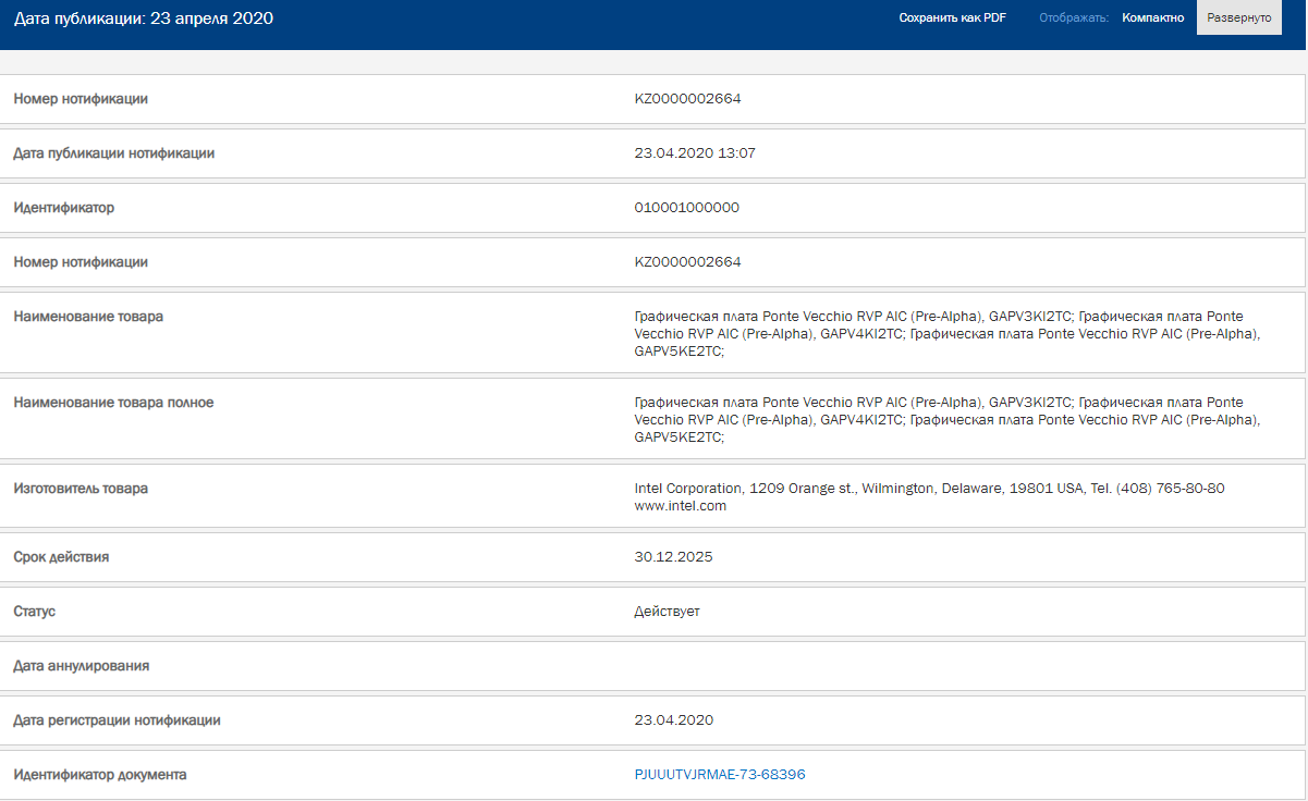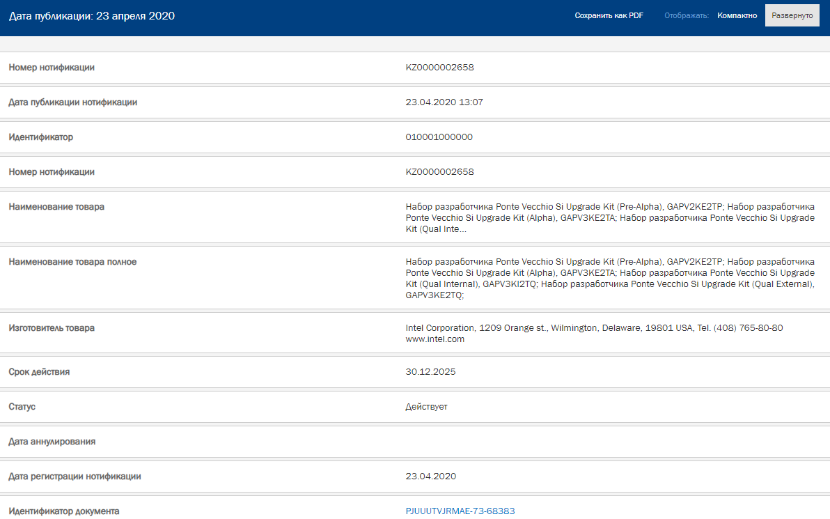 针对高性能计算,Intel也早就宣布了Ponte Vecchio,现在它已经出现在了ECC(欧亚经济委员会)的产品清单中,有两种形态,一个是AIC独立扩展卡,另外一个是升级包。