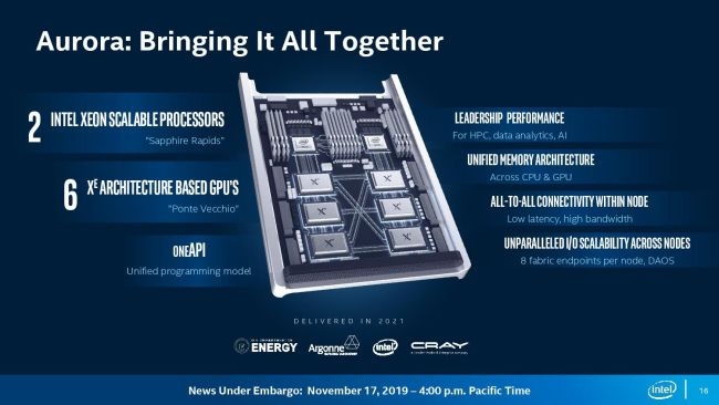 美国能源部下属阿贡国家实验室的“极光”(Aurora)百亿亿次级超级计算机,就会配备Ponte Vecchio,搭配至强处理器、傲腾持久内存,是美国首个全面采用Intel以数据为中心技术产品组合的百亿亿次级计算系统。
