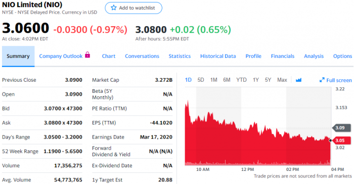 4月23日,财政部、工信部、科技部、发展改革委发布关于完善新能源汽车推广应用财政补贴政策的通知。通知从即日起实施。根据通知,从今年起,未来3年补贴标准将在上一年基础上分别退坡10%、20%和30%。通知首次规定补贴前指导价不得高于30万元,这意味着补贴前售价在30万元以下(含30万元)的新能源乘用车才能获得补贴。为鼓励“换电”新型商业模式发展,加快新能源汽车推广,“换电模式”车辆不受此规定限制。根据通知内容,蔚来汽车由于采用“换电模式”,还将继续享受2020年的补贴标准,独享高端新能源汽车补贴政策。蔚来采用自动化的“换电”技术,客户只须等待数分钟,即可完成电池更换过程。蔚来已建成沿高速公路的电池更换网络。受此消息影响,今天常规交易中蔚来股价一度摸高3.2美元,涨幅达到3.6%。蔚来股价最终报收3.05美元,下跌0.04美元,跌幅为1.3%。