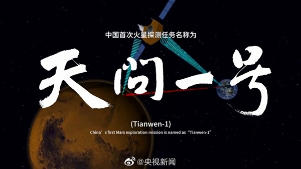 据悉,中国行星探测任务被命名为“天问(Tianwen)系列”,首次火星探测任务被命名为“天问一号”,后续行星任务依次编号。