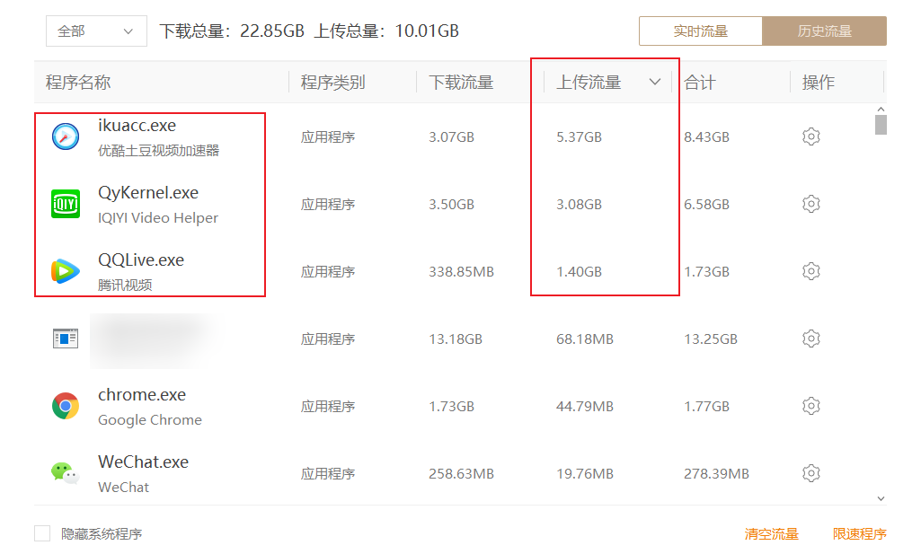 而且在我第二天来公司,打开流量监控软件时,我发现它们不但在后台上传还一直在下载。