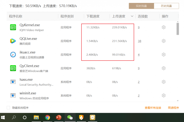 三大视频软件都一度达到了 500 + kb/s 的 上传速度。