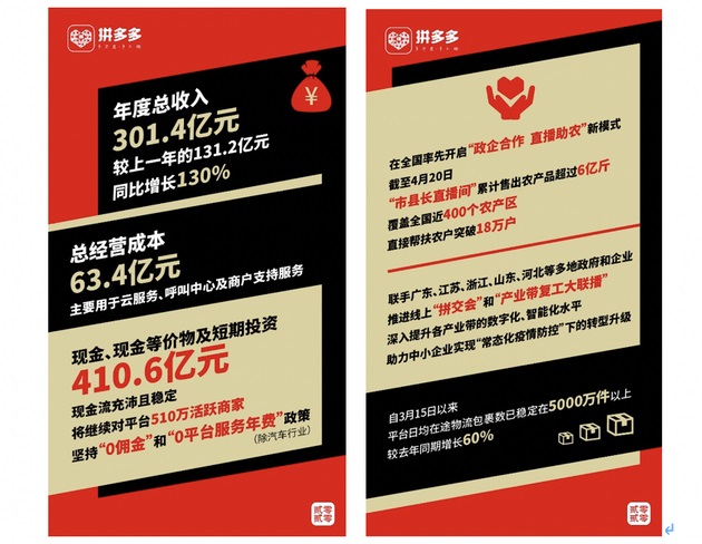 2019年,随着拼多多在社交拼团、市县长直播等模式创新,并通过独创的百亿补贴活动直接为消费者创造价值,年报显示,当前拼多多的商家数已从360万增长至510万。