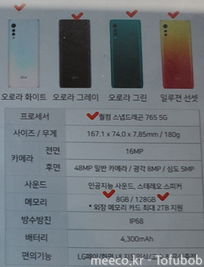 4月25日消息,LG Velvet的核心参数被外媒曝光。