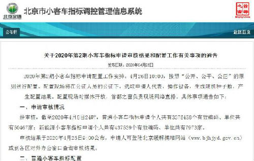 4月25日据媒体报道,北京小客车指标办公布了今年第二期小客车指标申请审核结果和配置数据。截至本期,新能源指标总申请个数437539个、企业单位7973家。按照现行规则测算,今年个人新能源指标54200个已在首期用尽,新申请者或将继续轮候9年。