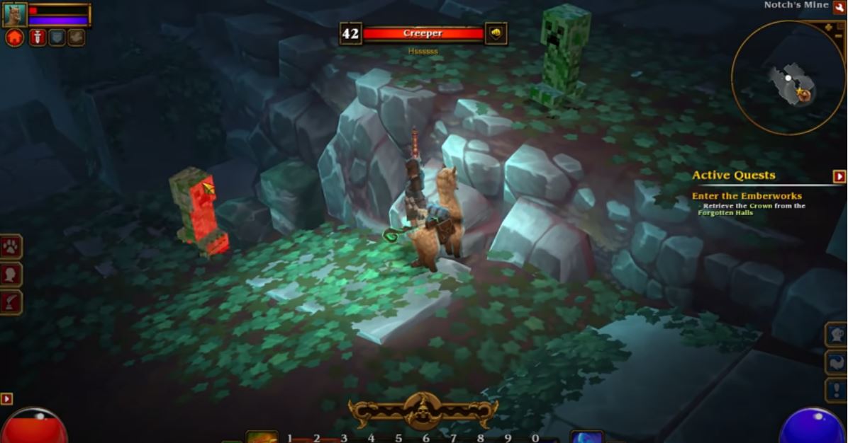 在《火炬之光2》第三幕矮人战场废墟的矿洞里,也出现了苦力怕的英姿,苦力怕爆炸之后还会像《我的世界》中一样破坏地形,炸出方块,十分有意思。不过需要注意的是,这个彩蛋是随机生成的,如果没有触发成功的话,恐怕就需要重新生成世界了。