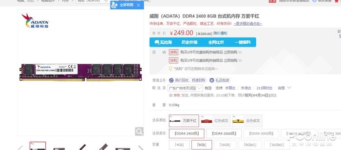 在大家最为关心的价格方面,8GB型号标价219元,4GB型号都标价129元,作为对比,同样是某东自营平台的威刚2400MHz 8GB内存条则要249元,这样看国产内存的性价比还是蛮不错的。