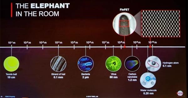 在2019年的Hotchips会议上,台积电研发负责人、技术研究副总经理黄汉森(Philip Wong)在演讲中就谈到过半导体工艺极限的问题,他认为到了2050年,晶体管来到氢原子尺度,即0.1nm。