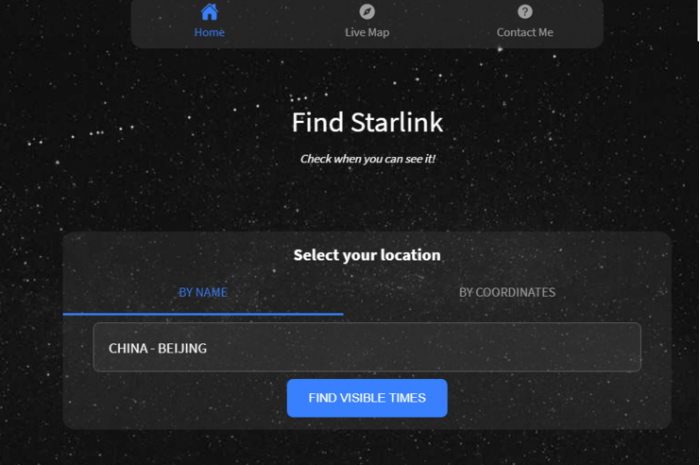为了随时随地都能看到这些星星,一些爱好者还专门为此建立了一个网站:https://findstarlink.com/,只要在网站中输入目前所在位置,便可查询到最佳观测时间。