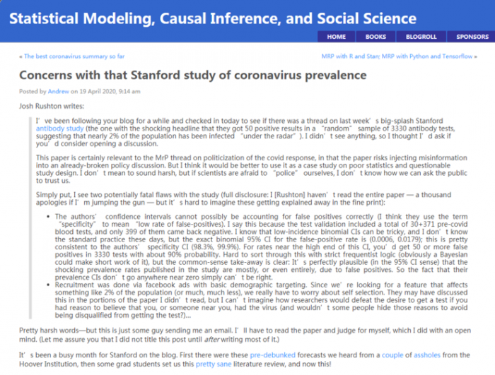 哥伦比亚大学统计学家 Andrew Gelman 以很长的篇幅提出了圣克拉拉研究存在的问题,并在博客中直言: