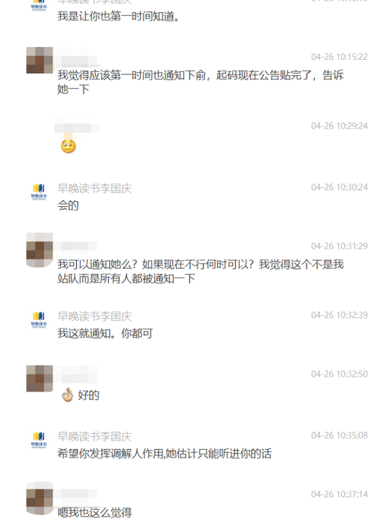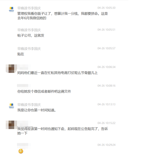 李国庆的儿子则表示,代为通知母亲相关信息。“我觉得应该第一时间也通知下俞,起码现在公告贴完了,告诉她一下。”并表示,“我觉得这个不是我站队而是所有人都被通知一下。”