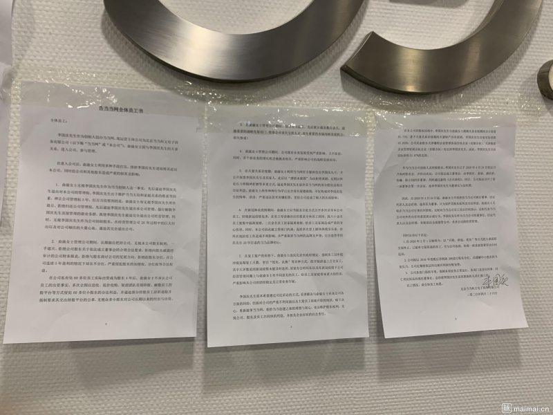 同时,李国庆在公司内张贴了一张“告当当网全体员工书”,除了列举俞渝的一系列“不当行为”,还宣布俞渝不再担任当当执行董事、法人、总经理,由李国庆全面接管公司。他还宣布,2020年被单方面解约的员工可以重新返岗;公司将拿出2019年税后净利润的30%来进行股东分红;李国庆为当当网现任董事长。