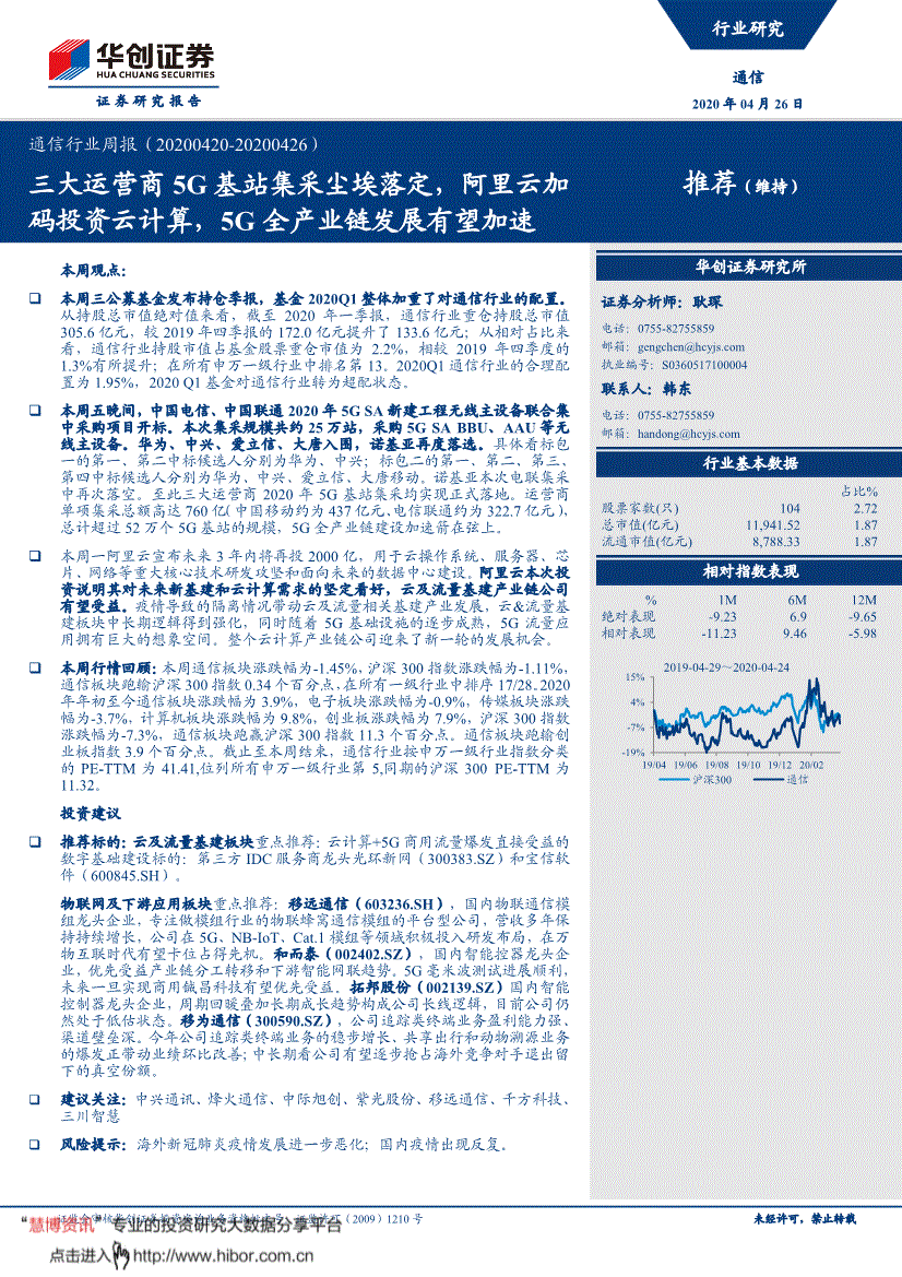 方正证券认为,随着疫情缓解,通信行业产业链整体复工情况良好。运营商5G招标陆续落地,广电网络相关5G投资也将逐步展开,5G网络建设的加速将带动整个产业链产能释放。