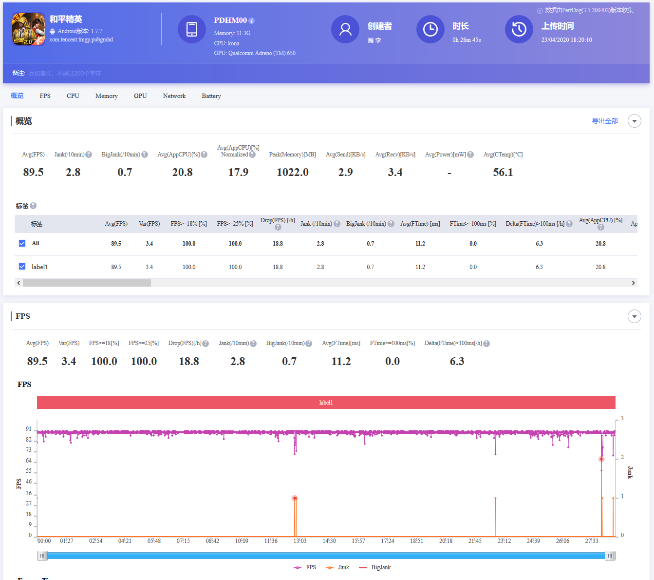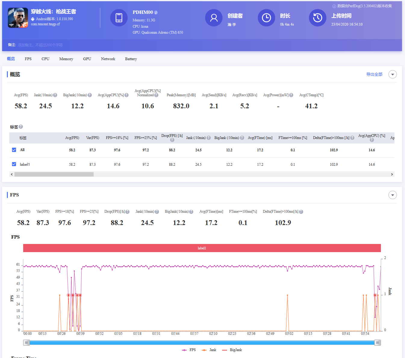 那么实际表现如何呢?让我们来看看在游戏中的表现情况吧。小编这里测试了三款游戏,分别是和平精英(完整报告)、QQ飞车(完整报告)、穿越火线(完整报告)三款游戏,可以看到帧率都非常的稳定,其中中途的帧率下滑是因为跳回主界面以及其他操作导致的,在游戏中表现一直非常稳定。