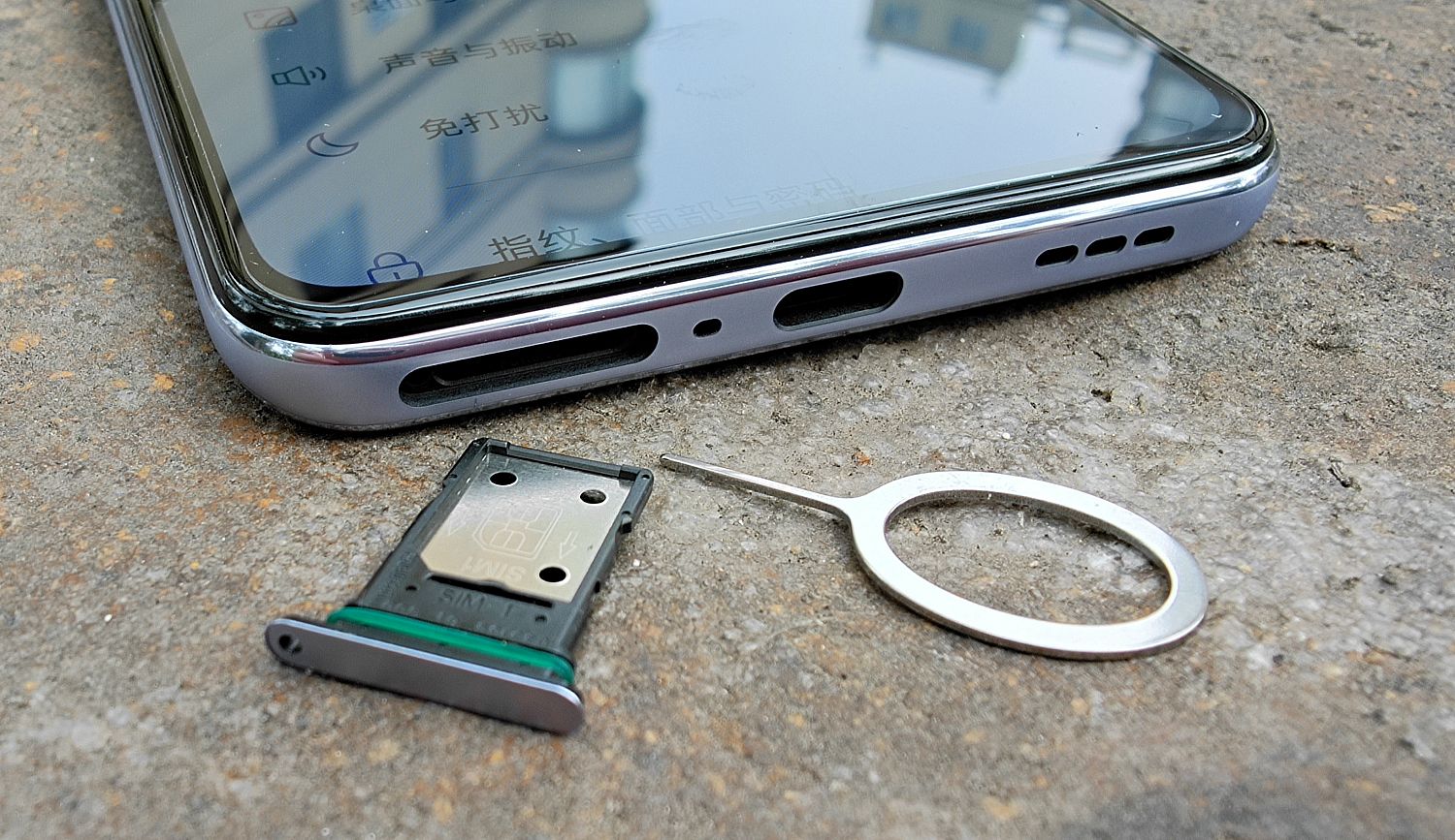 SIM卡位置依然放在了底部,从左至右分别为SIM卡卡托、听筒、USB Type-C闪充端口、扬声器格栅。