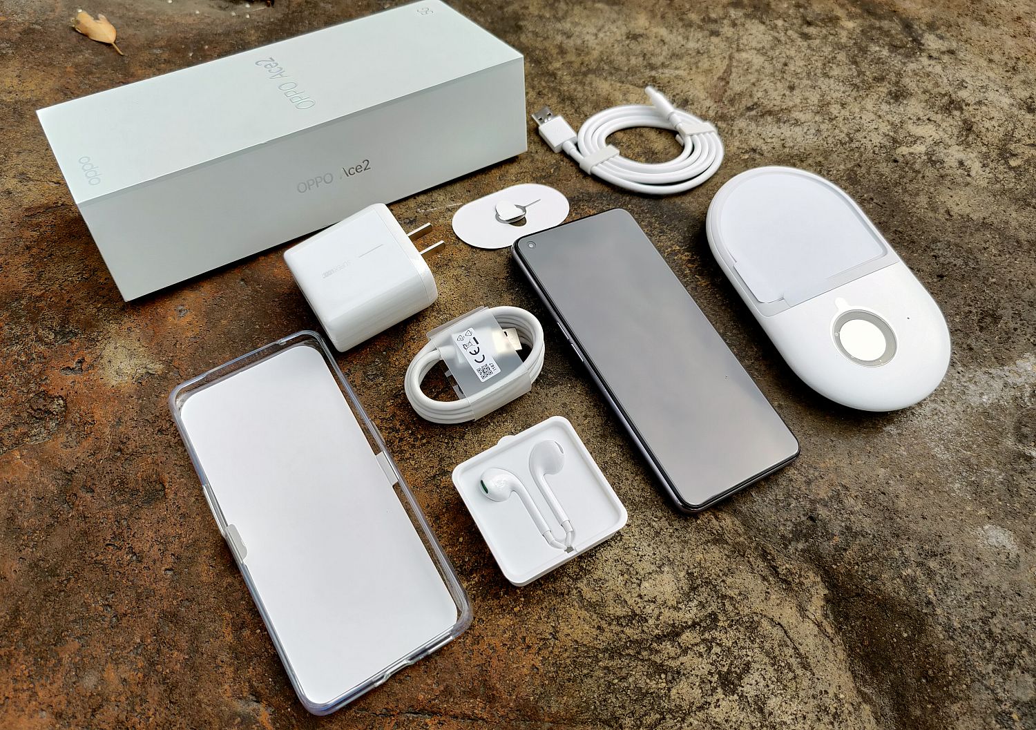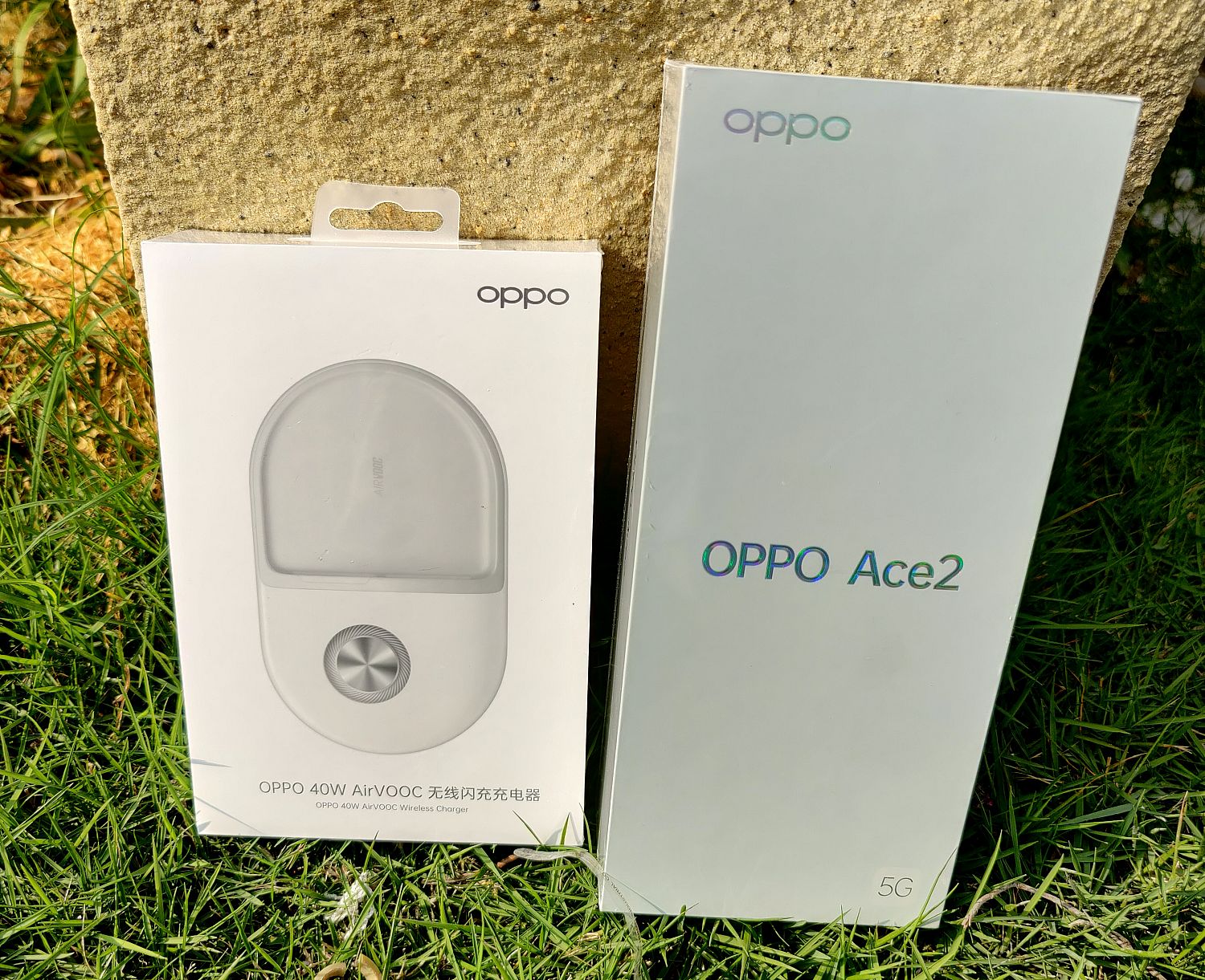 OPPO Ace 2的包装和前代产品差别并不是很大,依然采用简洁的白色包装盒,稍有不同的是在右下方印有“5G”标识。此外Ace 2还首次商用了40W的AirVOOC无线闪充技术,让无线的充电效率接近于有线,甚至于超越部分友商的有线快充速度。