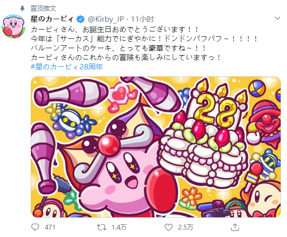 今日(4月27日)是《星之卡比》28周年纪念日,为了庆贺这个十分特别的日子,官方目前公开了一些贺图,为卡比送上新的生日祝福。1992年4月27日,GAME BOY游戏《星之卡比》日版正式发售,象征着《星之卡比》系列的开端。游戏中的主人公“卡比”拥有着粉色的圆形外观,给玩家们一种粉萌可爱和英勇作战的形象。