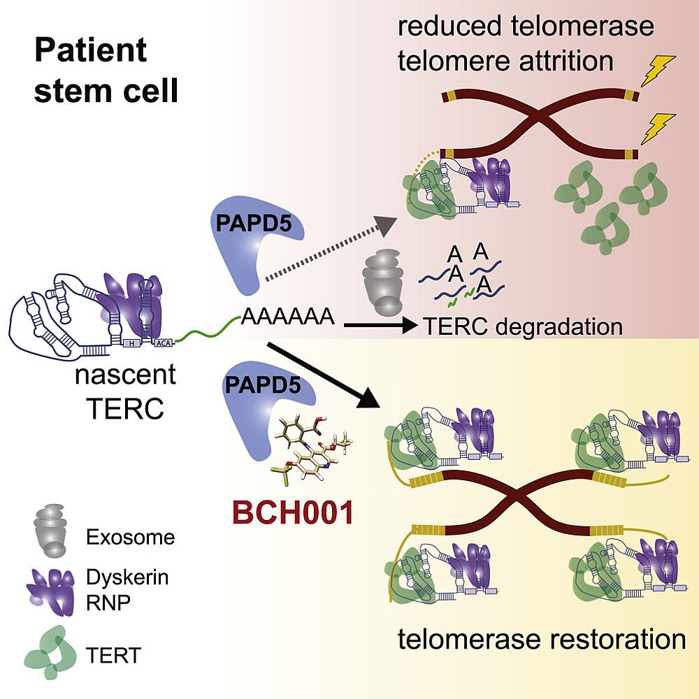 在新的研究中,哈佛大学的研究人员筛选了超过10万种已知的化学物质,寻找能够保护PARN健康功能的化合物。这让他们找到了似乎能够通过抑制一种叫做PAPD5的酶来实现的小部分,这种酶的作用是解开PARN并破坏TERC的稳定。