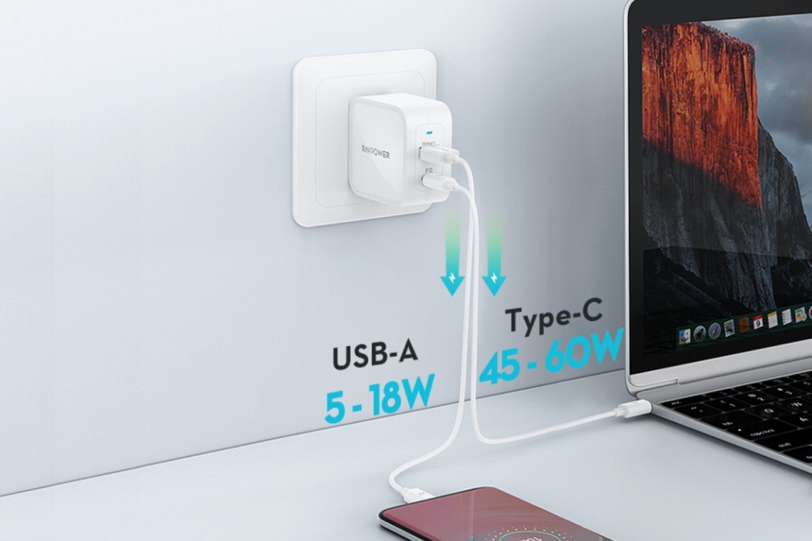 RAVpower 65W氮化镓充电器适合多设备用户使用,可以同时为笔记本+手机充电,或是手机+移动电源、手机+手机等双设备同时充电,RAVpower电商旗舰店已经上架该产品,感兴趣的小伙伴可以前往了解更多详情。