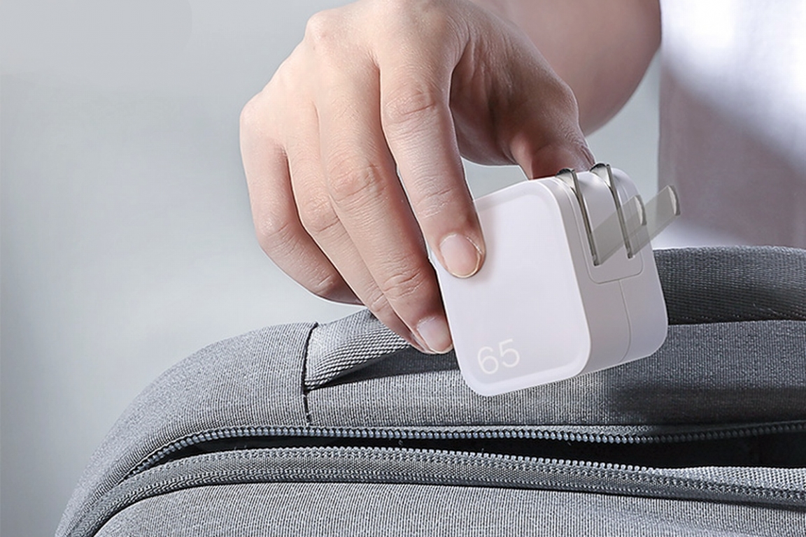 RAVpower 65W氮化镓充电器采用可折叠插脚设计,外出携带时只需要将插脚轻轻折叠即可收纳进壳体内,不会与背包物品缠绕打架,支持100~240V 50/60Hz工作,适合全球使用。