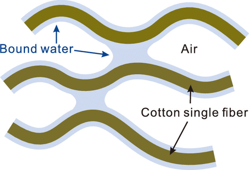 根据模型,棉质材料的软硬是由一根根纤维交错形成的网络决定的,而影响纤维网络的,正是结合水在纤维素表面的毛细管粘附现象。