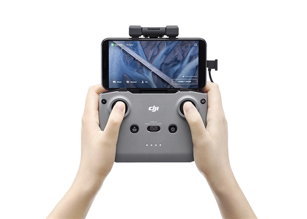 遥控器使用适配全面屏手机的新型夹持结构,握持和操控体验提升,支持边充电边飞行,电量长达4小时。