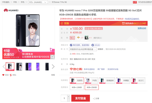 nova7 Pro 8GB+128GB版售价3699元,8GB+256GB版售价4099元,提供亮黑色、7号色、绮境森林、仲夏紫、蜜语红等配色。