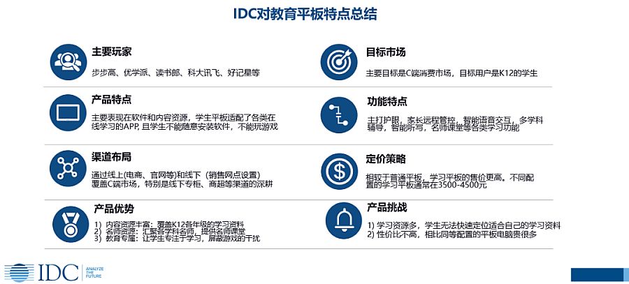 正因为教育平板与普通平板的以上不同和自身特点,目前,IDC平板电脑季度出货数据跟踪报告暂未把教育平板纳入监测范围内。