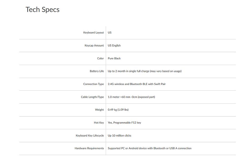 与ThinkPad Compact键盘不同,这次ThinkPad TrackPoint Keyboard II不再提供有线版本,只有无线一个版本,支持蓝牙5.0和2.4GHz双模链接,可同时链接多个设备,可通过微软SwiftPair蓝牙快速配对功能在设备之间快速切换。