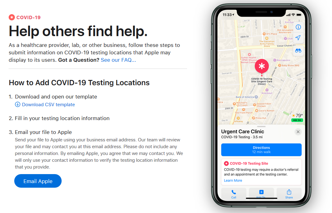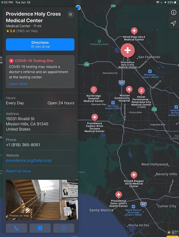 继本月上旬开放了专门的Apple Business Register页面之后,Apple Maps现在可以显示在美国和波多黎各当地的COVID-19检测点。4月11日,苹果推出了一个专门页面,允许医疗服务提供者和其他机构注册冠状病毒检测地点。当时,该公司表示,在将这些信息整合到其地图服务中之前,将对每一个苹果地图提交的信息进行单独审查。