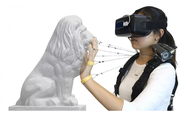 据外媒CNET报道,卡内基梅隆大学的研究人员希望通过一种能将实体物体的手感置于指尖的设备,让虚拟现实技术少一点虚拟,多一点实体感。Wireality是一种安装在肩部的触觉系统,它利用连接在手部的可伸缩线来提供VR体验过程中的反馈。它的工作原理是通过停止用户手部的运动来匹配他们“触摸”的虚拟物体的几何形状。一段视频展示了该设备的操作过程。