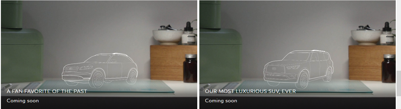 据了解,Carigami车型有三种型号可供选择:Infiniti Q50、QX80 SUV以及FX跨界车。