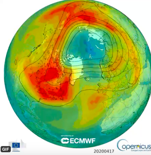 CAMS表示,这个空洞很大,在平流层约合11公里深处发现的大部分臭氧已经耗尽。上一次在北极观测到如此强烈的化学臭氧损耗是在10年前。