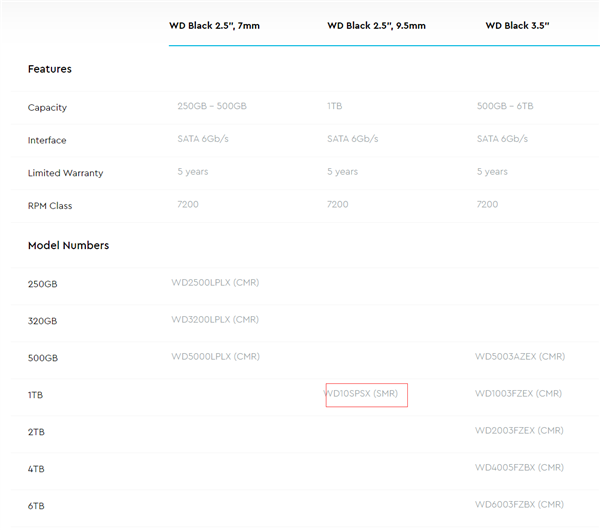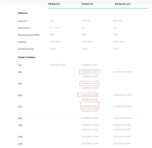 今天开始,西数的官网规格表也升级了,目前可以详细查看旗下硬盘是否为SMR硬盘。