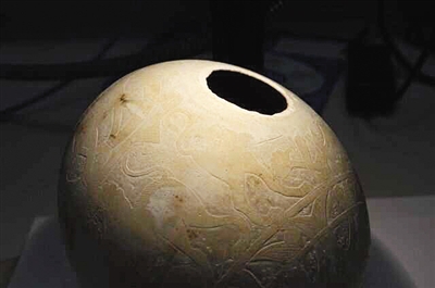 来自意大利伊西斯墓里的鸵鸟蛋 图片来源:物理学家组织网