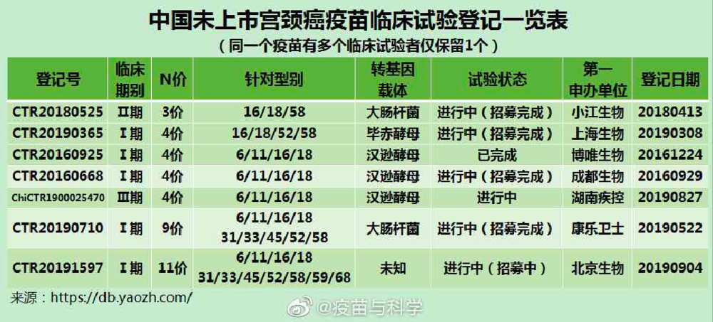 国内进入临床阶段的HPV疫苗,受访者供图