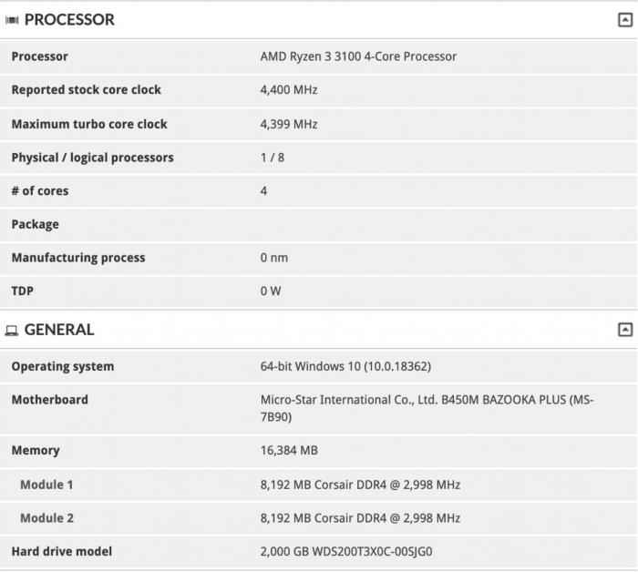 4月21日AMD正式推出了7nm Zen2架构的锐龙3系列处理器,主要是锐龙3 3300X及锐龙3 3100两款4核CPU,售价120、99美元起。锐龙3 3100的默认频率有些低,现在被已经被玩家超频到全核4.5GHz了,这下超值了。