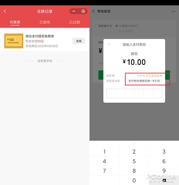最后说一下规则吧,和零钱免费提现额度一样,这个兑换来的额度也是累加的。也就是说无论你提现多少次,只要不超过你所获得的额度券上限,就一直可以使用。