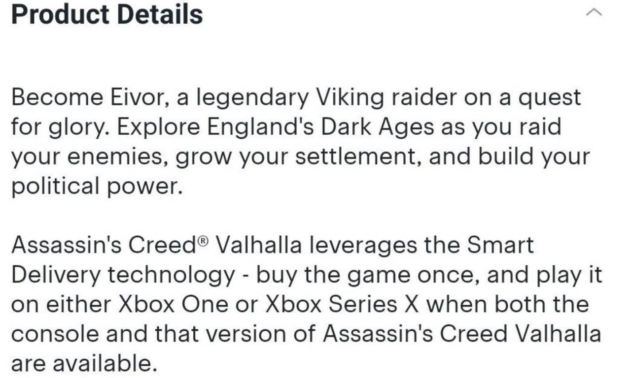 Valhalla)终于正式公布,游戏将于5月7日晚11点在微软的InsideXbox节目中迎来次世代实机演示首秀,根据XBOX商品描述显示,《刺客信条:英灵殿》和《赛博朋克2077》一样支持智能分发。