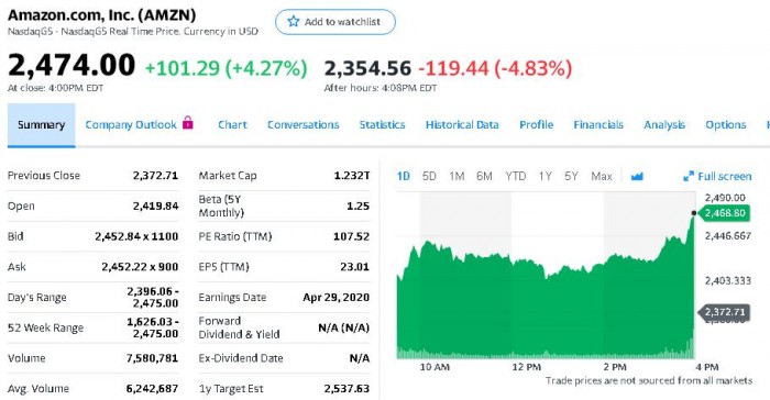 亚马逊股价截图