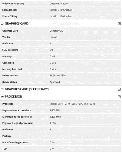 看来,联想是计划使用Comet Lake-H处理器与Quadro RTX 3000 GPU搭配来更新其ThinkPad系列工作站。