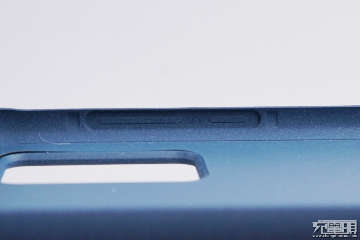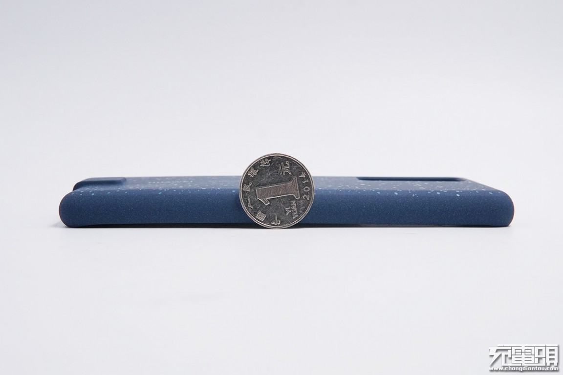 这款保护壳采用整体呈蓝色,带有细微的磨砂手感,防滑且不沾指纹,同时还融入了青色斑点点缀,看起来有点艺术画作的气息。