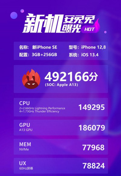 不过此前安兔兔那边曾公布过iPhone的跑分为49万出头,对比iPhone 11系列有着一定的差距,当时它们表示可能是受限于较小的体积和较小的电池容量,苹果很有可能对这颗A13仿生芯片做了更保守的调校,为续航和发热做出妥协。