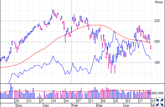自从3月23日的169.95美元的低点强劲反弹以来,过去10个交易日中,阿里巴巴股价在其中7个交易日中是下跌的。今天常规交易中,阿里巴巴股价下跌8.19美元,跌幅为4.04%,报收于194.48美元,盘中一度探底192.86美元,成交量比平均水平高24%。成交量大,股价跌至50日均线下方,对于增长型投资者来说是一个明显的退出点,尤其是在前期股价已经有大幅增长的情况下。另外,同时阿里巴巴股票表现还算不错,即使是今天192.86美元的低点,也只是比过去52周高点231.4美元低了16%。阿里巴巴股票趋势已形成杯柄形态,但尚未接近比“杯柄”216.1美元高出0.1美元的价位。IBD的数据显示,阿里巴巴综合评分(最高为99)为98。通常情况下,评分为95的个股,股价再创新高的可能性要高得多。华尔街预计今年第一季度阿里巴巴营收将增长9%,利润将下跌33%,每股收益为0.86美元。但是,随着中国各行各业持续复工复产,FactSet的资料显示,分析师预计第二季度阿里巴巴利润降幅仅为1%,第三、四季度将分别增长8%和10%。