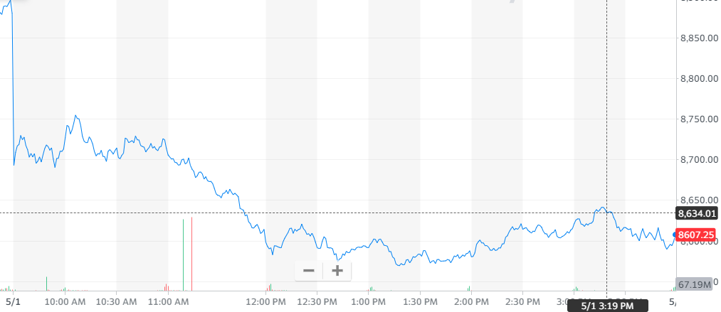 特朗普威胁将就新冠肺炎疫情进行报复,大型科技公司财报令人失望,打压美股收跌。截至收盘,道指跌622.03点,跌幅为2.55%,报收23723.69点;标普500指数跌81.72点,跌幅为2.81%,报收2830.71点;纳指跌284.6点,跌幅为3.20%,报收8604.95点。