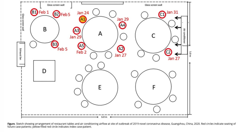 让我们先来重温一下餐厅的故事。下图中在一家餐厅就餐的A1病人在感染了新型冠状病毒,但在其外出就餐时没有表现出任何症状。随后,患者A1又感染了其他家庭成员以及另外两个家庭的人。
