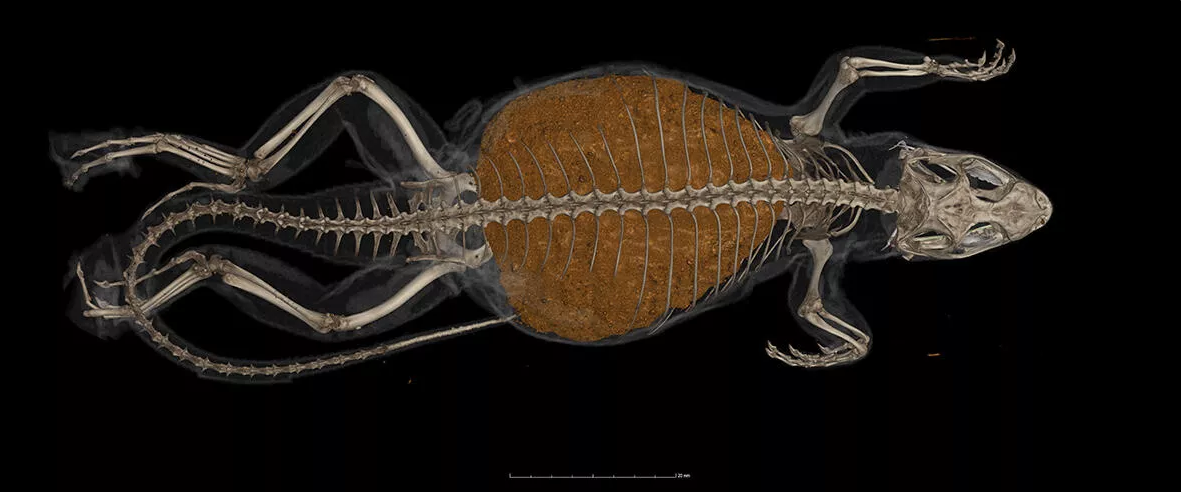 起初,科学家们以为这只蜥蜴怀孕了,但发觉其身体不对劲,并通过CT扫描发现了可怕的真相。这只蜥蜴随后被人道地实施安乐死,研究人员为它制作了一个身体的3D模型供研究。佛罗里达州博物馆的 Edward Stanley 表示:“我被它的其他器官所剩的空间所震惊---如果你看一下3D模型,它的肋骨上只剩下一个很小的空间,供心脏、肺和肝脏使用。”