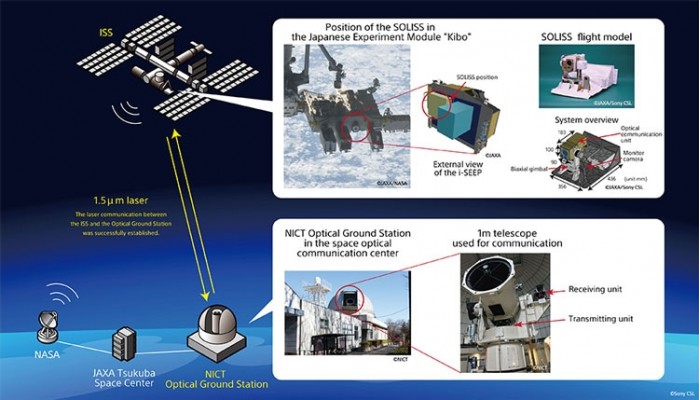 凭借着索尼技术开发的一套激光通信系统,国际空间站获得了一条“网络宽带”,速度高达100Mbit/s,约合12.5MB/s,百兆宽带的水平。这套激光通信系统名为SOLISS(Small Optical Link for International Space,即小型卫星光通信装置),是由日本航空航天研究局(JAXA)和美国国家信息和通信技术研究所(NICT)共同合作完成的,SOLISS基于索尼的光盘激光数据记录技术,在这方面,索尼拥有相当丰富的经验。