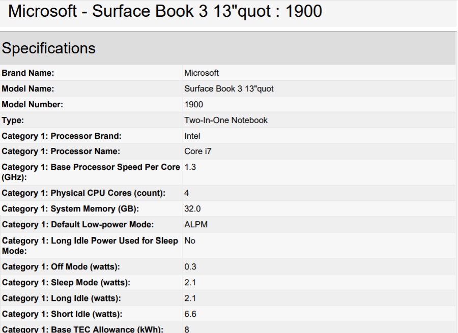 今天早些时候,搭载13英寸和15英寸显示屏的Surface Book 3出现在能源之星认证中。根据一份产品上市资料显示,至少有一台Surface Book 3的15英寸版搭载了英特尔的酷睿i7处理器和最高32GB内存。