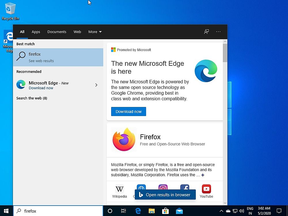 经过外媒测试,发现只有在搜索“Chrome”、“Firefox”或者“Opera”这三款主流浏览器关键词的时候,Windows Search才会出现Edge浏览器的推荐广告。如果搜索Brave或者Vivaldi等第三方浏览器的时候,则没有相关的推荐。对于已经安装了Edge浏览器的设备,那么相关的广告或者推荐就会消失。